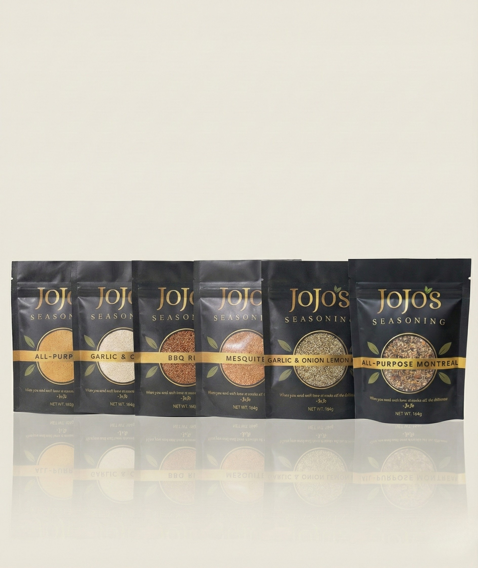 JOJO’S SEASONING is her signature secret, a collection of powerhouse blends designed to deliver chef level flavor. Each ingredient is handpicked for its quality, thoughtfully crafted, and packaged to make cooking simple.